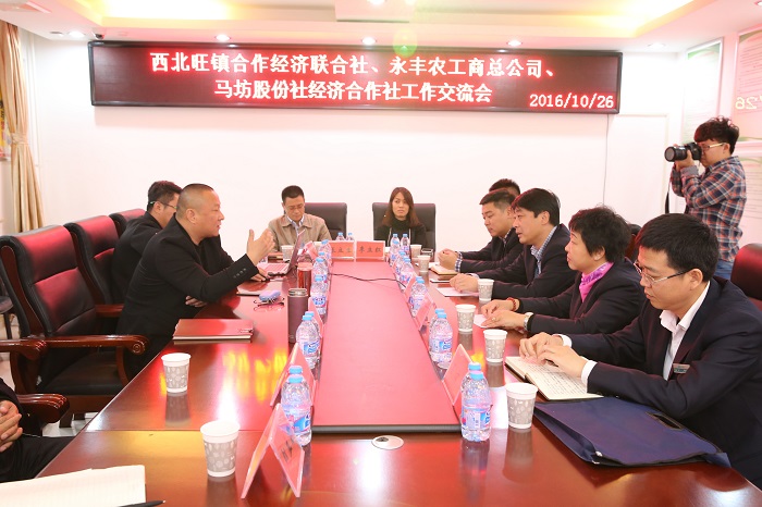 2016年10月26日,西北旺鎮(zhèn)合作經(jīng)濟聯(lián)合社、永豐農(nóng)工商總公司到東升鎮(zhèn)馬坊村交流訪問,與馬坊股份社經(jīng)濟合作社在東升鄉(xiāng)馬坊村村委會會議室進行了工作交流座談。