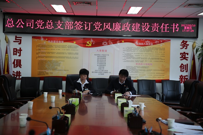 為了深入推進(jìn)總公司黨風(fēng)廉政建設(shè)和反腐敗工作,總公司黨總支部書記與各二級(jí)公司黨支部書記簽訂了領(lǐng)導(dǎo)干部黨風(fēng)廉政建設(shè)責(zé)任書。