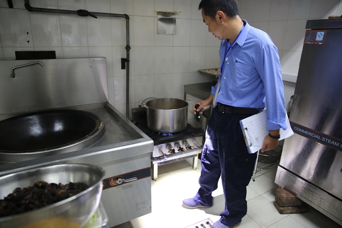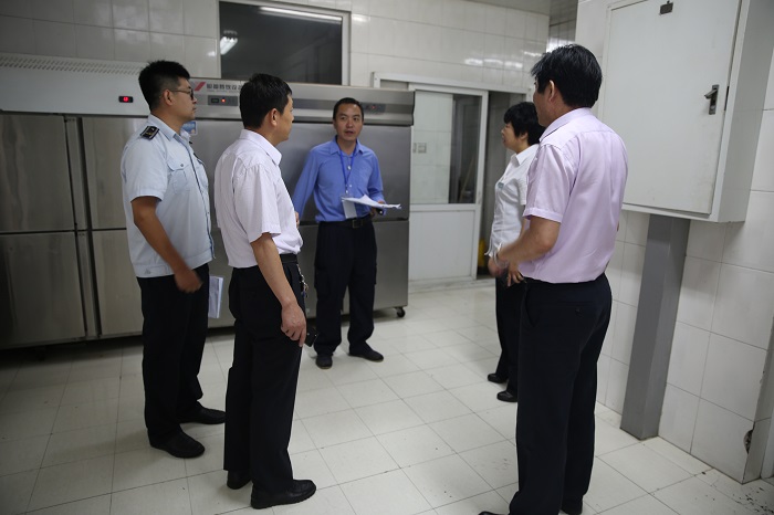 檢查人員來到公司食堂檢查用餐環(huán)境、餐桌、餐具、灶臺、儲物間等衛(wèi)生質(zhì)量,并針對蚊蠅、防鼠設(shè)施、地漏、排風(fēng)口等易造成微生物滋生的地方做重點檢查,提出改進措施。