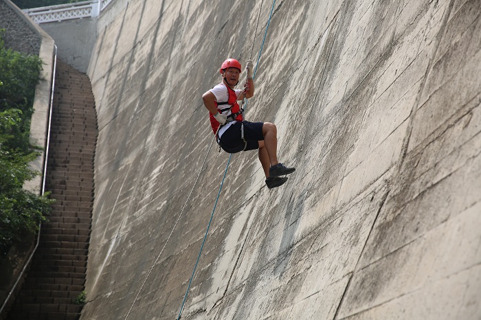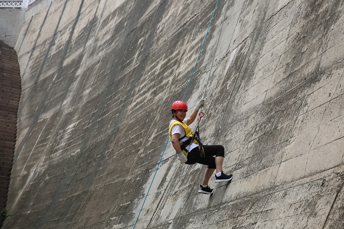大壩速降屬極限挑戰(zhàn)項目,要求參與者穿戴好各項安全防護(hù)措施后,抓住繩索從一座高度為50米的大壩上攀巖而下,降落點在壩下平地,可體驗速降的刺激與驚險。員工們挑戰(zhàn)自身心理極限,感悟團隊支持的力量,踴躍參加,重塑員工堅韌不拔的品質(zhì)。