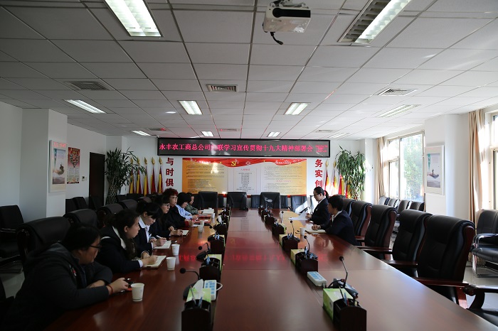 為學(xué)習(xí)宣傳貫徹十九大精神,推動(dòng)?jì)D聯(lián)工作,2017年11月10日,總公司婦聯(lián)組織總公司及各二級(jí)公司婦聯(lián)專干召開“永豐農(nóng)工商總公司婦聯(lián)學(xué)習(xí)宣傳貫徹黨的十九大精神座談會(huì)”。