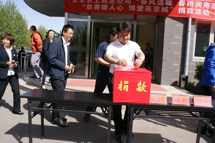 此次捐款活動充分體現(xiàn)了永豐農(nóng)工商總公司各公司及所有員工主人翁精神,獻愛心,幫助身邊需要幫助的人是每一個總公司人分內的事,此次永豐農(nóng)工商總公司“春風送暖 春雨潤海淀”“慈善暖人心 博愛在京城”捐款活動順利結束。