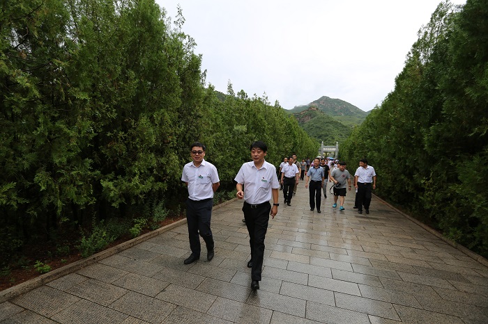 隨后總公司全體黨員去參觀了烈士陵園,在綠樹叢中矗立著一座莊嚴雄偉的大理石紀念碑,碑上刻著蕭克將軍手書的8個大字“血沃幽燕 名垂千古”。緬懷革命先烈,拜讀烈士的一個又一個的英雄事跡,黨員們無不為之感動。